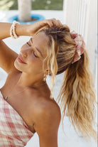 We’ve revived the off-cuts of our Pink Check cotton fabric to create these statement scrunchies. Scrunchies have become a part of our sustainable, zero-waste mission to minimise wasteful fabric off-cuts. Our scrunchies are softer on your hair then elastic hair ties, reducing breakage, and are a sustainable alternative to polyester-based hair ties.