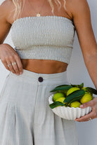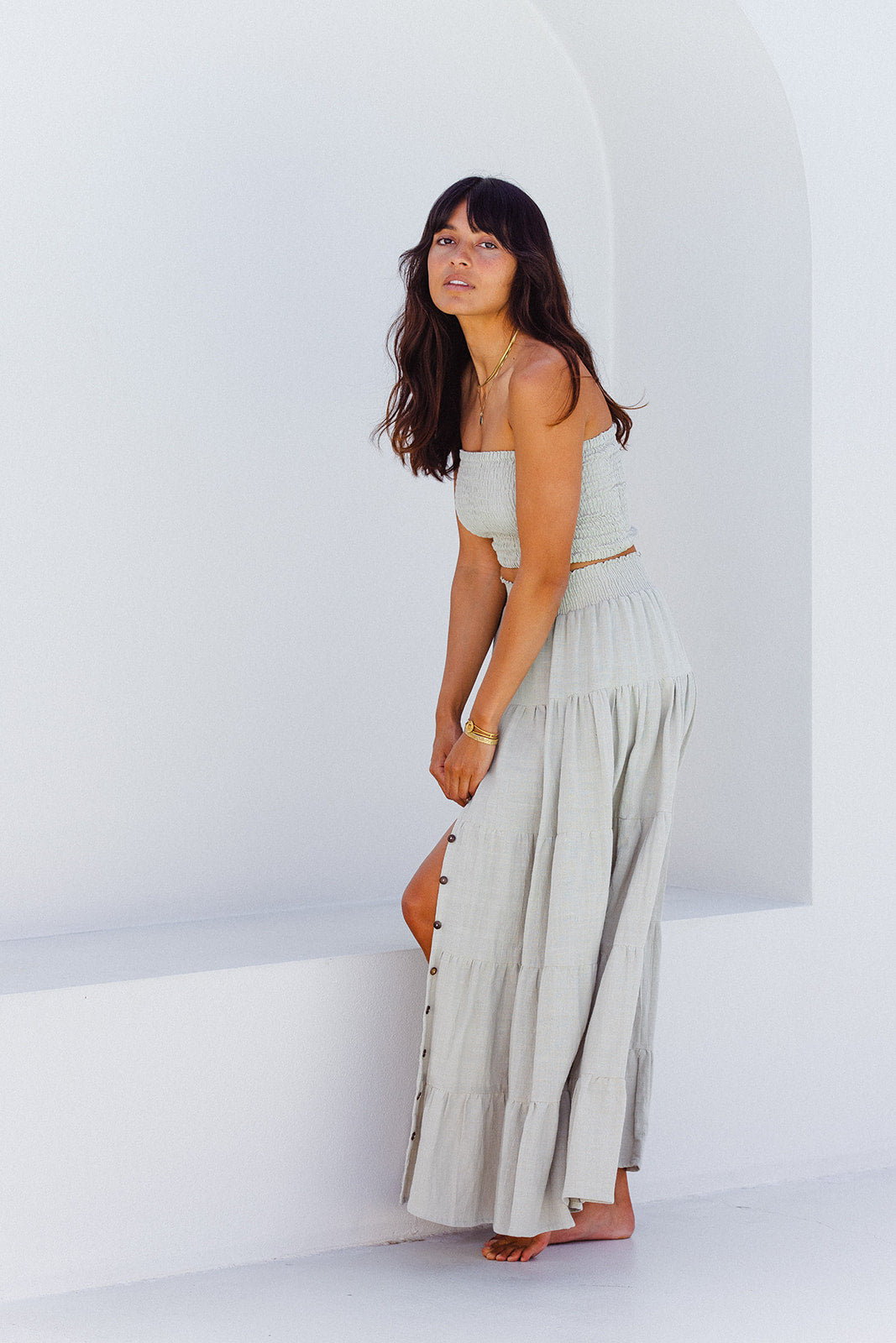 The cutest and most comfortable top you’ve been dreaming of. This sweet tube crop is your go-to staple – flattering, comfy and easy to style. Fitted through the bust and waist, it pairs perfectly with the classy Lora Pants, romantic Flora Maxi Skirt, or the laidback Lora Crochet Shorts.