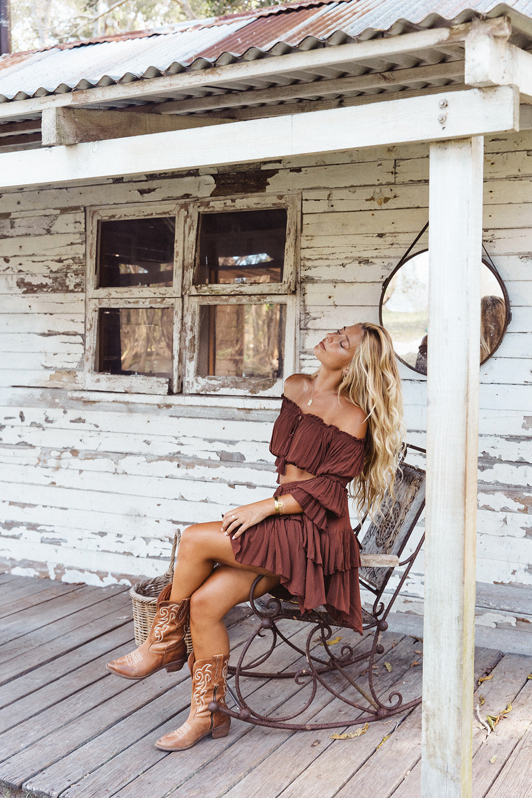 The Esmeralda Crop Top is a soft, feminine dream, designed to take you from day to night. This beauty works on or off-the-shoulder. Featuring a shirred waistband, puff sleeves, an elastic frill neckline, and detailed delicate ties. Fits true to size.