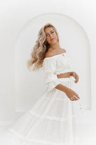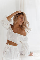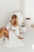 Wear it on or off-the-shoulder, with its elastic frill neckline, puff sleeves, and delicate keyhole tie detail. The shirred waistband provides a flattering shape and comfortable fit. Pairs perfectly with the Daisy Mini Skirt, Esmeralda Maxi Skirt, Lotus Pants—or all the denim you already own. True to size.