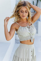 Meet our new Flora Crop: the cutest top you’ve been dreaming of. This sweet pistachio crop is the perfect staple for your wardrobe. Fitted through the bust and waist. Pair back with the romantic Flora Maxi Skirt, the more classy Lora Pants, or the comfy Lora Crochet Shorts.