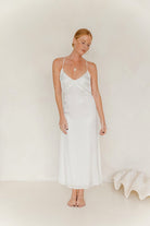 Isa Maxi Slip Dress - White Pearl (with lining)