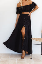 From morning beach strolls to hot dates, our flattering Flora Maxi Skirt has you feeling confident and carefree. This pretty staple features beautiful shell buttons at the front that you can unbutton, adding a playful, flirty vibe. Finished with a comfy shirred waist, this soft and breathable beauty is designed for your summer and winter of love.