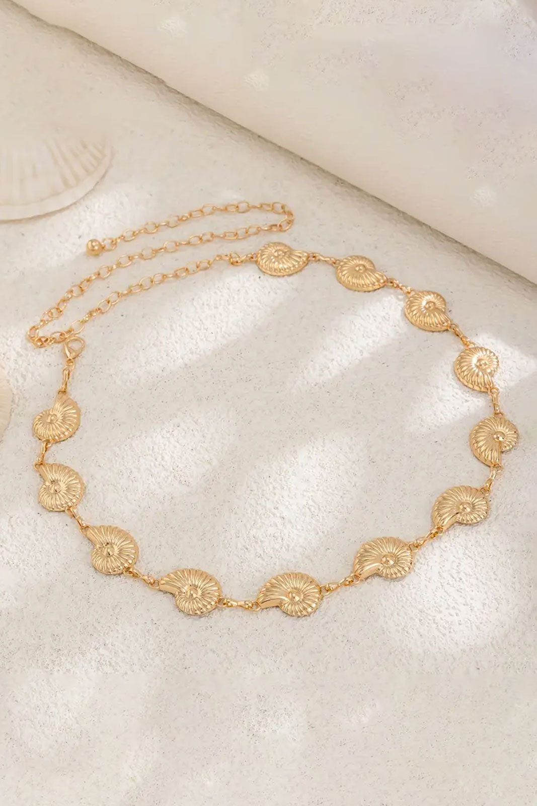 This Shell waistband in gold adds an effortlessly dreamy touch to any outfit. Style it over a flowy maxi dress, your favourite skirt, or even layered with skirts and knits — it instantly brings charm, definition, and boho elegance to your look.