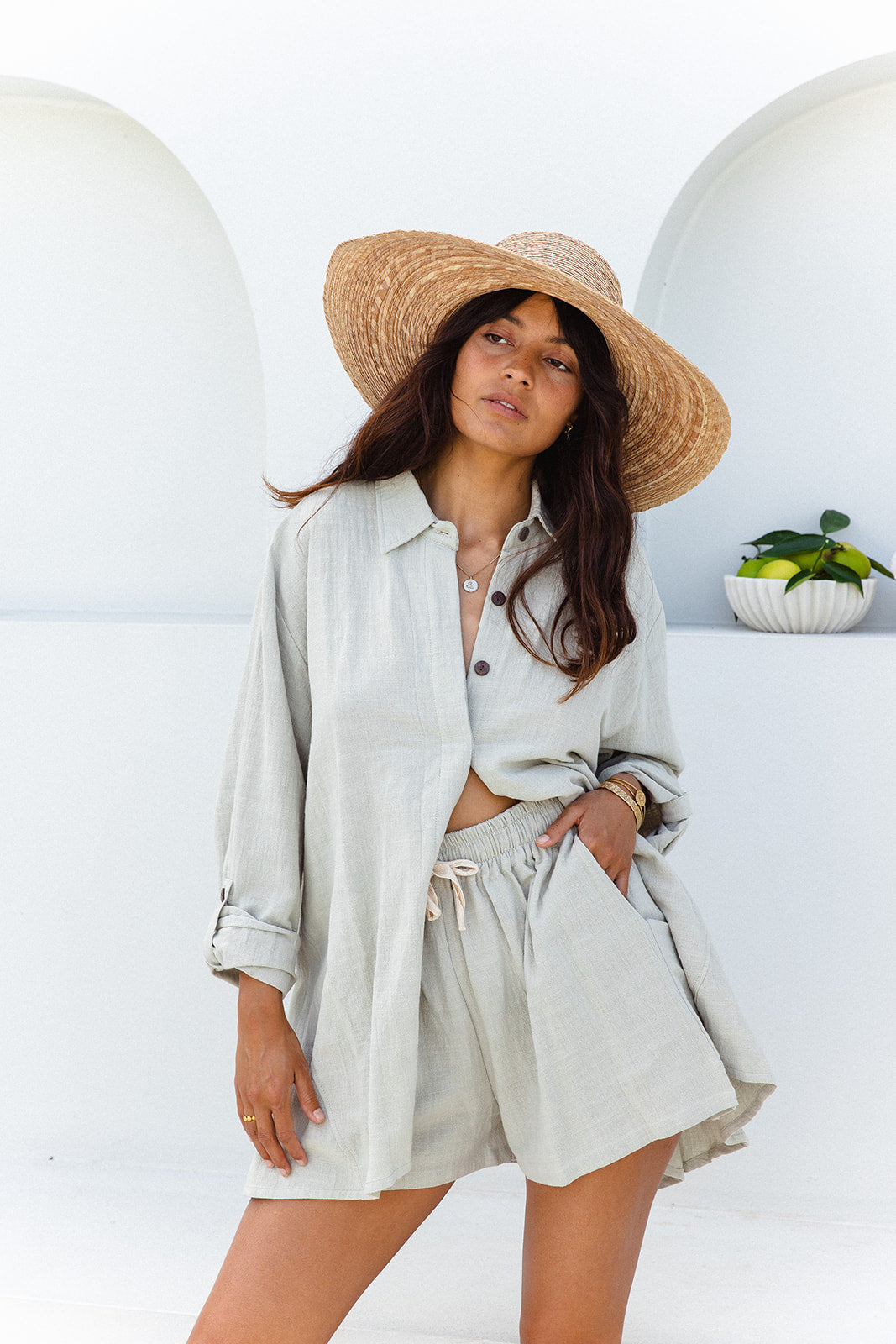 Finished with a wide comfy elastic waistband, drawstring tie and pockets. Pairs perfectly with the matching Lotus Oversized Shirt or thrown over your favourite swim.