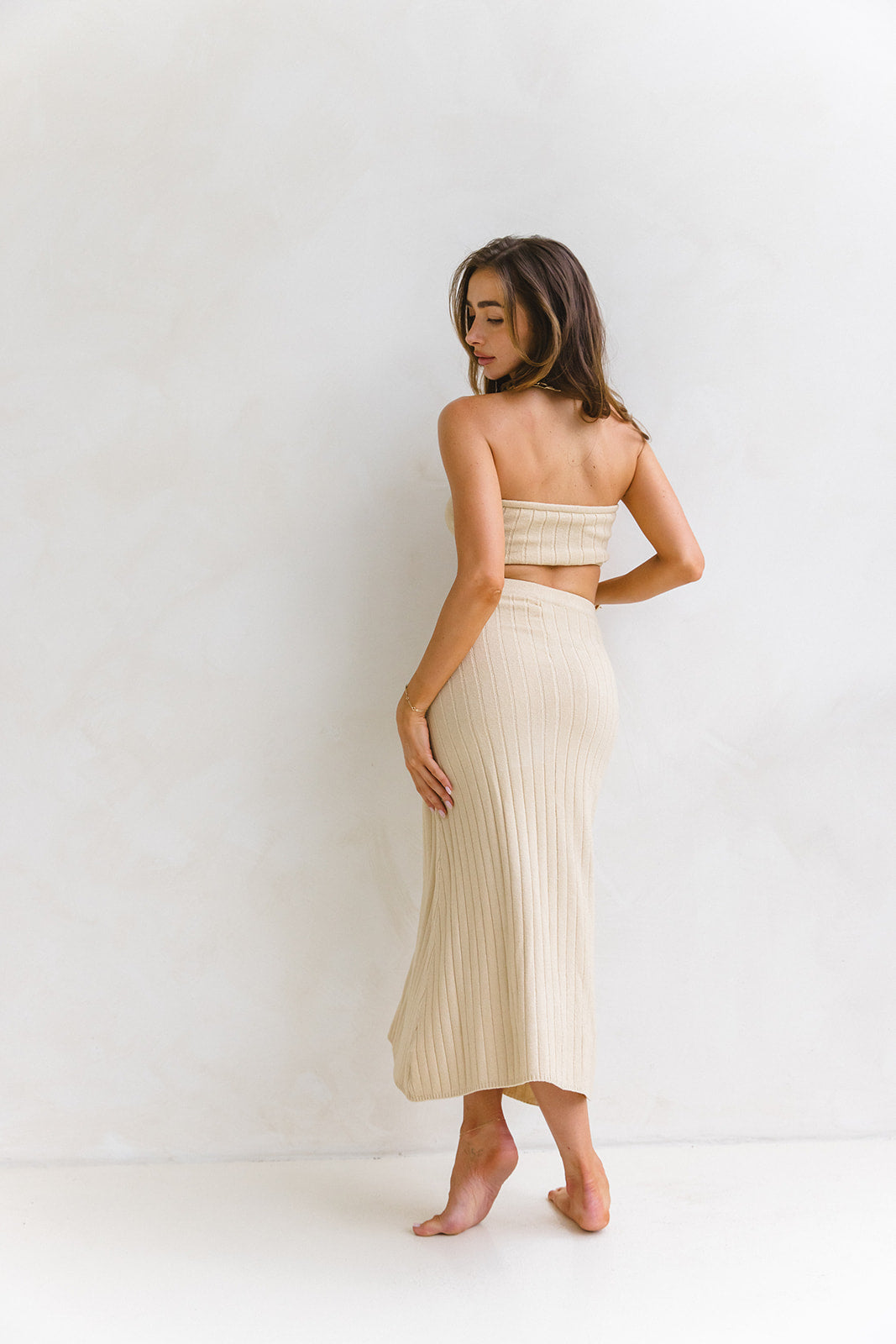 Bella Bias Cut Skirt - White Pearl (with lining)