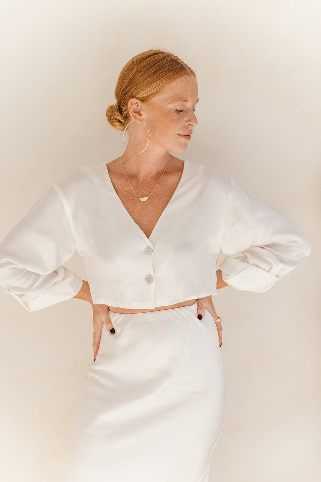 Lagoon Wrap Skirt - White Pearl (Lined Inside)