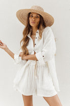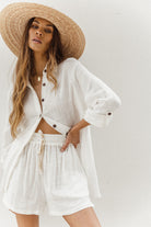 Slip into something comfortable and cute. Our new Lotus Shorts are an effortless, easy to wear staple for your wardrobe. Finished with a wide comfy elastic waistband, drawstring tie and pockets. Pairs perfectly with the matching Lotus Oversized Shirt or thrown over your favourite swim.