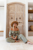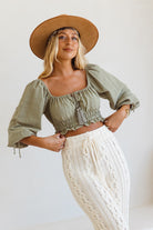The Aqua Top is a soft, feminine staple piece designed to seamlessly take you from day to night. This versatile top offers both comfort and style. Wear it on or off the shoulder for a chic, adaptable look. The shirred waistband ensures a flattering fit, while the puff sleeves add a touch of elegance. Delicate front ties complete the design with a playful, romantic finish.